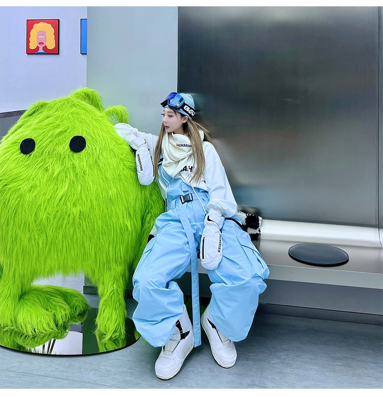 Women's North White Snowrush 3L Bibs Overall with One-shoulder Strap