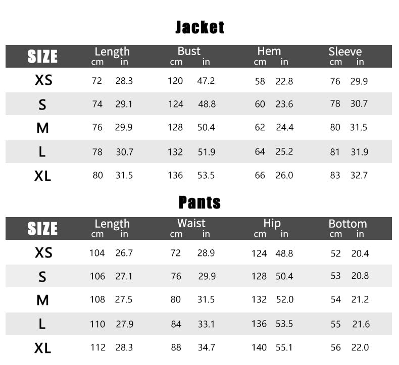 Shoulder, Bust, Sleeve and Length for Jacket.